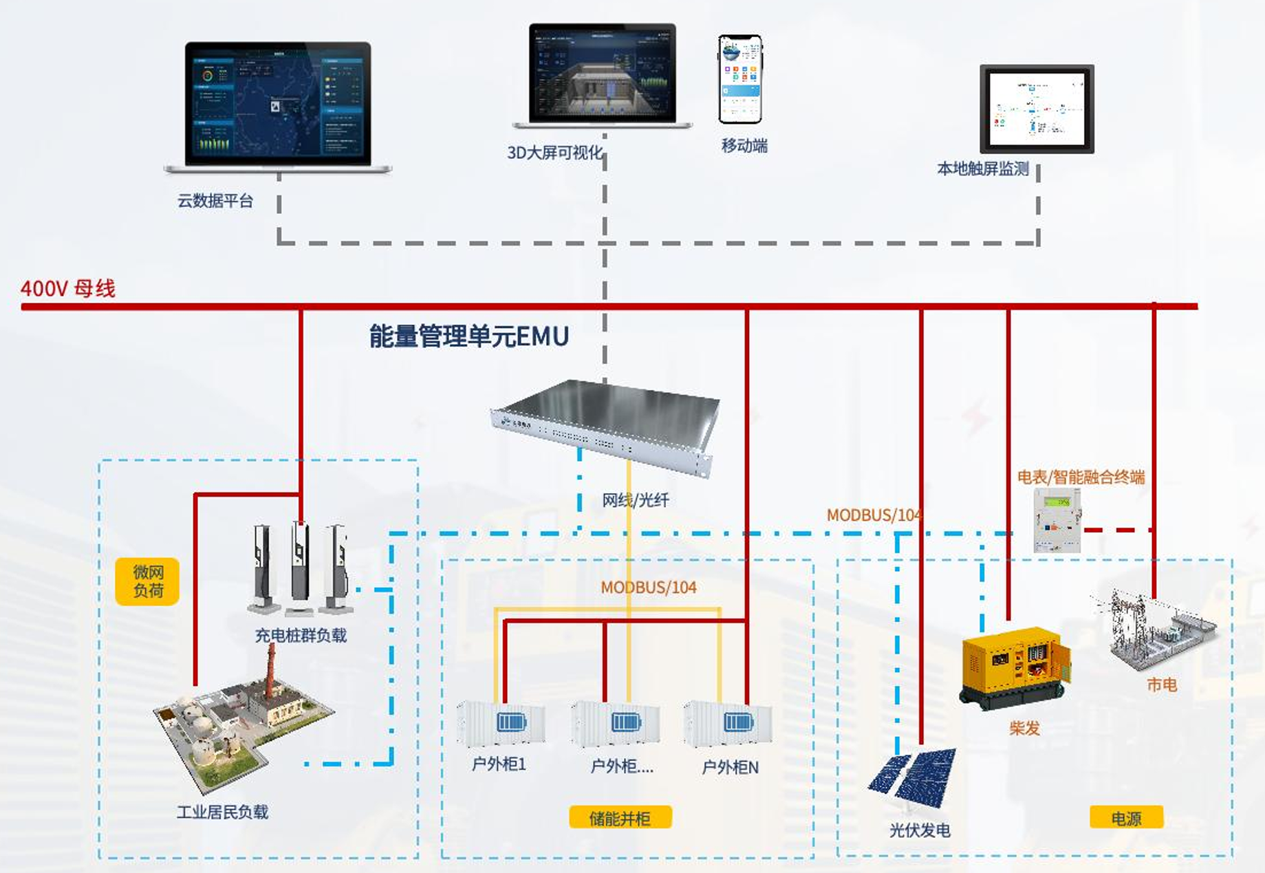 微网光储柴充解决方案架构--能量管理云平台EMS搭配能量管理单元EMU